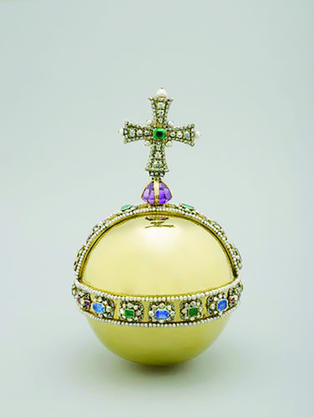金球是“王权三件套”中另一个引人注目的物件。它是一个空心金球,顶部镶嵌一个由钻石和珍珠组成的十字架。在加冕仪式上,这个金球被放置在君主的手上,赋予了主权的象征。