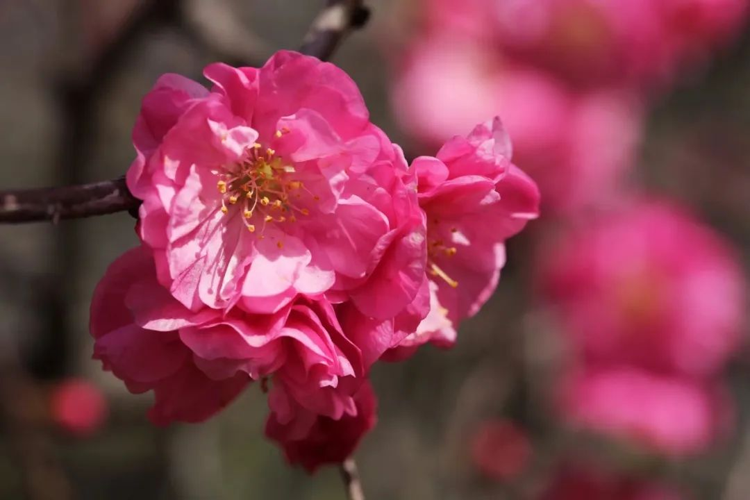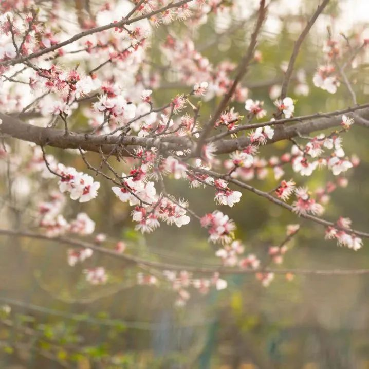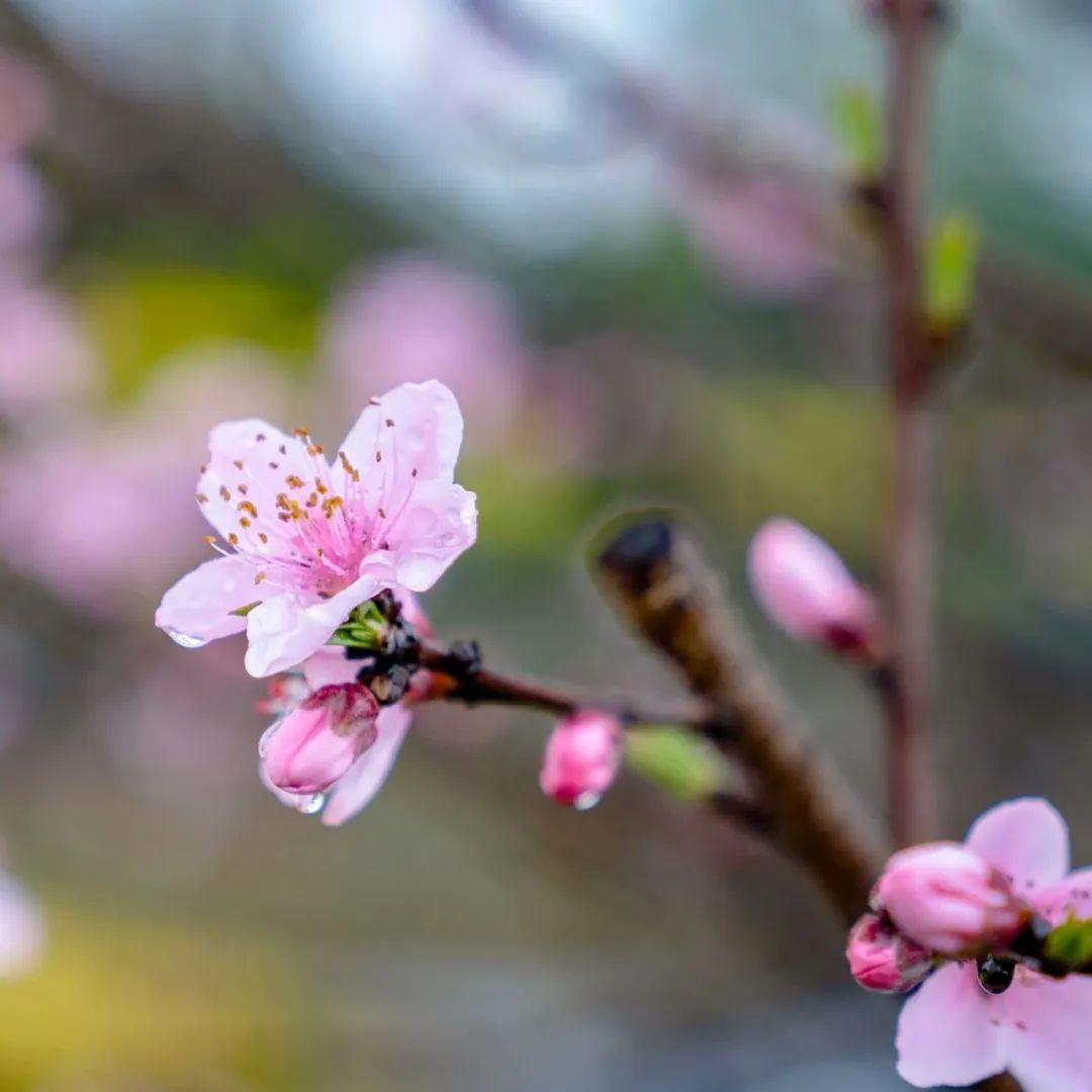 初春时分山桃芽苞在枝干中悄然鼓起,随着气温的上升,展现出艳丽的花朵。