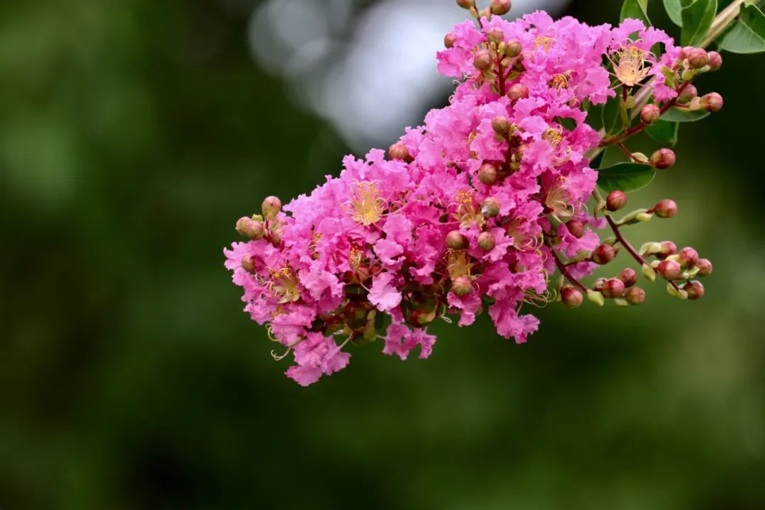 紫薇花因花开灿烂、花期长,颇受世人喜爱,紫薇花几乎可以从6月一直开到9月,因此又得名“百日红”。