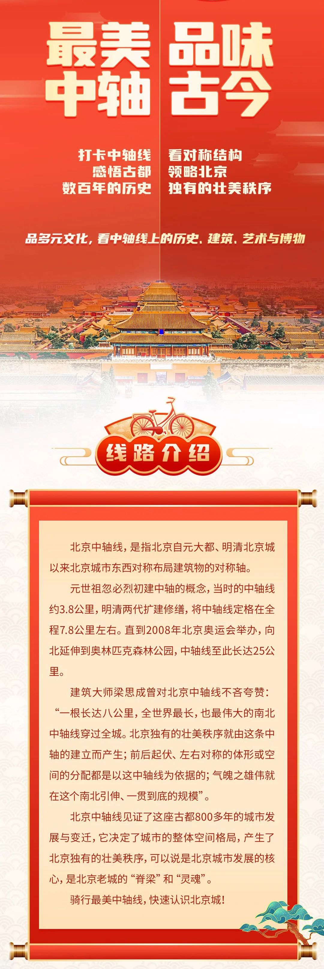 微风骑行,鸟语花香,满目皆景,鲜花与绿道交映出绝美画卷,这就是当下的京城。此时寻一辆单车,让美景跟随车轮徐徐展开,用“翻滚的车轮”拥抱诗情画意的北京吧!“最美中轴 品味古今”“秀石景山 骑妙之旅”“骑遇运河 行走大运”,跟着这三条骑行线路一“骑”出发!