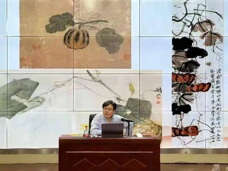 罗韬老师还对宋代赵昌,近代齐白石、高剑父等大师的三幅《南瓜图》分别进行了解读。他通过三幅画作的色彩、场景、细节等带领大家一步步对三位大师进行深入了解。大师所处的时代背景、思想感情等都能通过鉴赏作品感知出来。罗韬指出,鉴赏作品要从地域,风气到个人才调对具体作品进行分析。罗韬也提到齐白石的艺术主张“妙在似与不似之间,太似为媚俗,不似为欺世”,得出鉴赏作品的最高境界便是:“达意高于状物”。