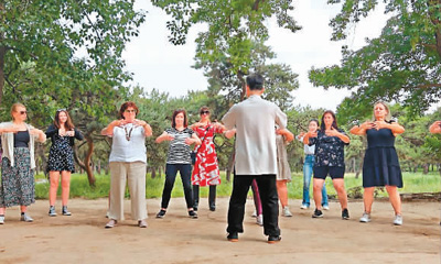 英国游客在北京天坛公园学习太极拳。北京市文化和旅游局供图