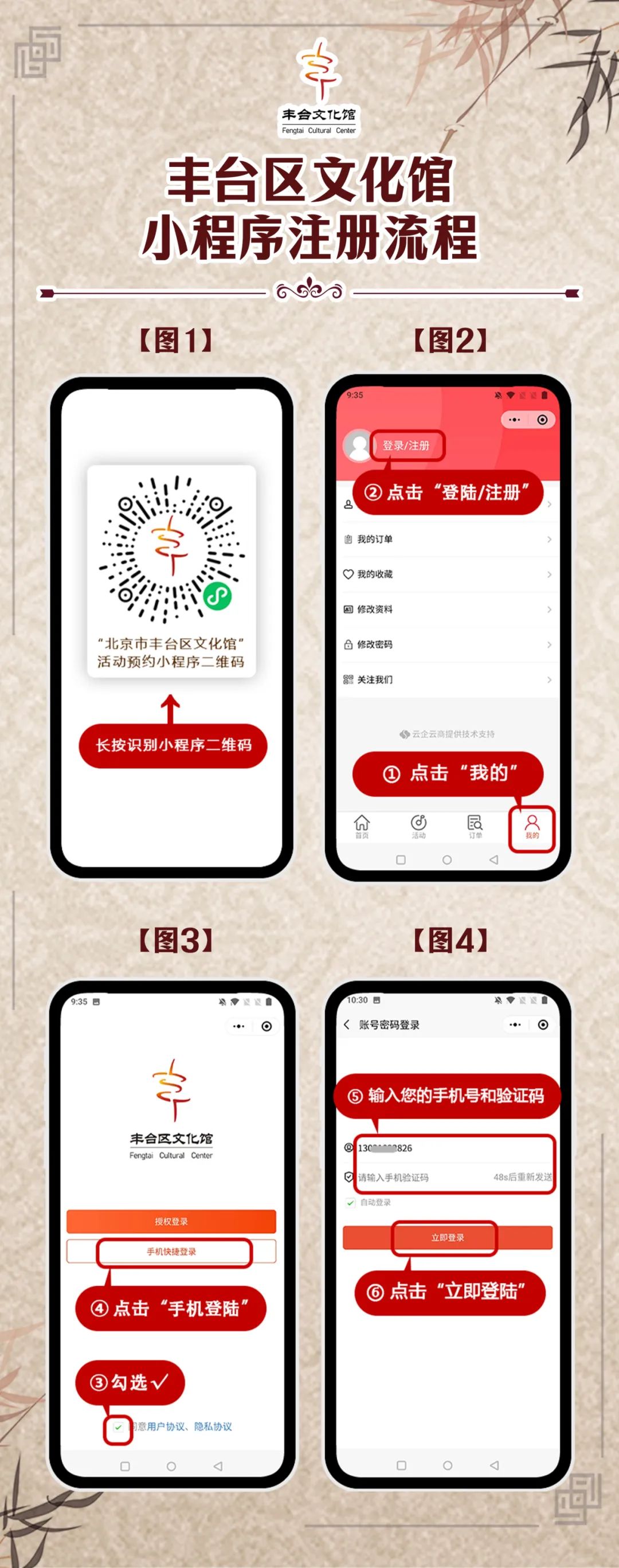 五、请您主动遵守剧场的各项规定,服从工作人员的管理,文明礼让、有序排队、依次兑(领)票。演出信息请您及时关注“北京市丰台区文化馆”微信公众号动态;