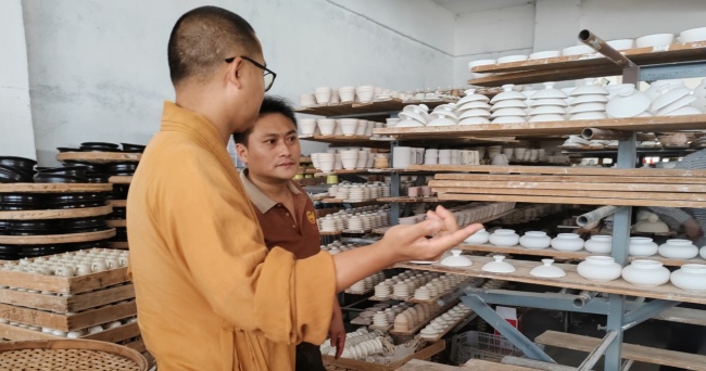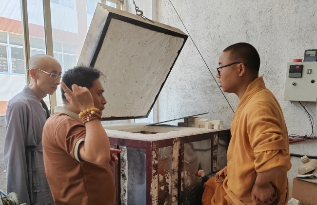 近日,一场跨越千年的文化对话在泉州德化悄然展开。泉州市永春县普济寺住持贤旺法师率僧团造访福建省德化县方窑陶瓷有限公司,唐慕林窑品牌创始人林良渊亲迎贵客,在瓷泥与釉彩交织的艺术空间里,为来宾详细阐释陶瓷设计理念与精湛的工艺制作流程。这场看似普通的考察活动,实则是一次文化基因的深度碰撞,背后是两大跨越时空的文化符号 —— 普济寺与唐慕林窑的深厚渊源。