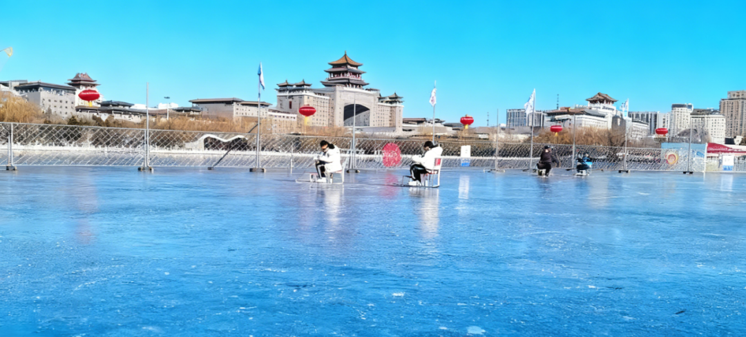 天然冰面搭配公园的园林景致