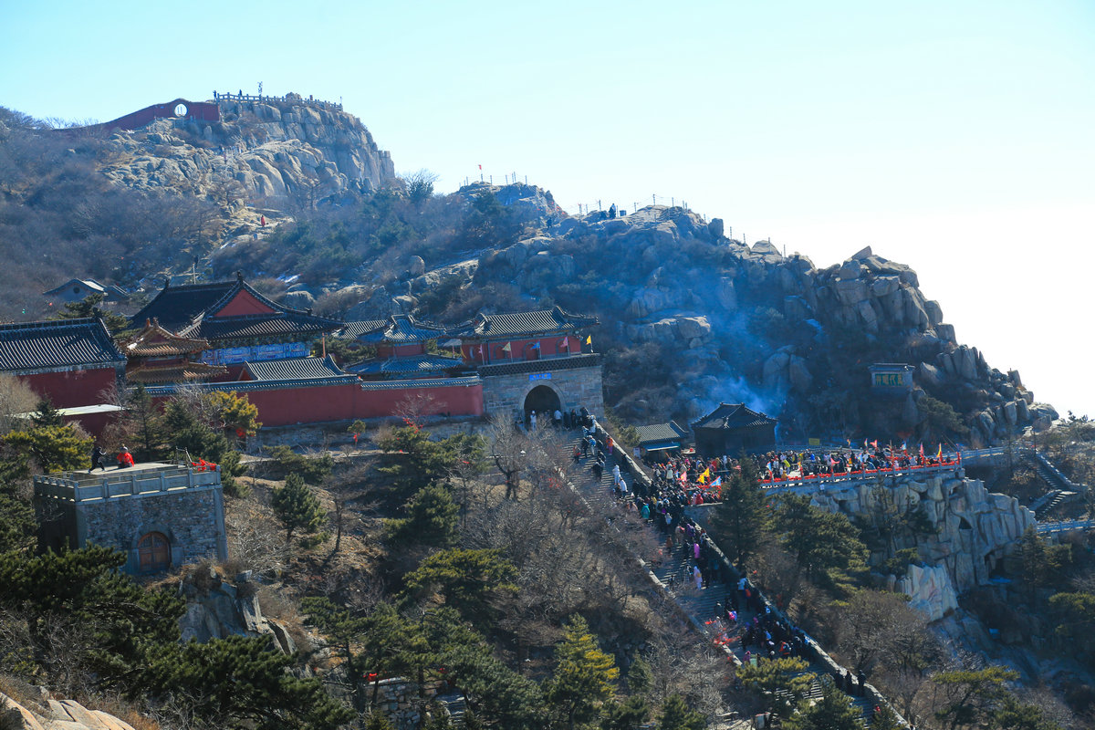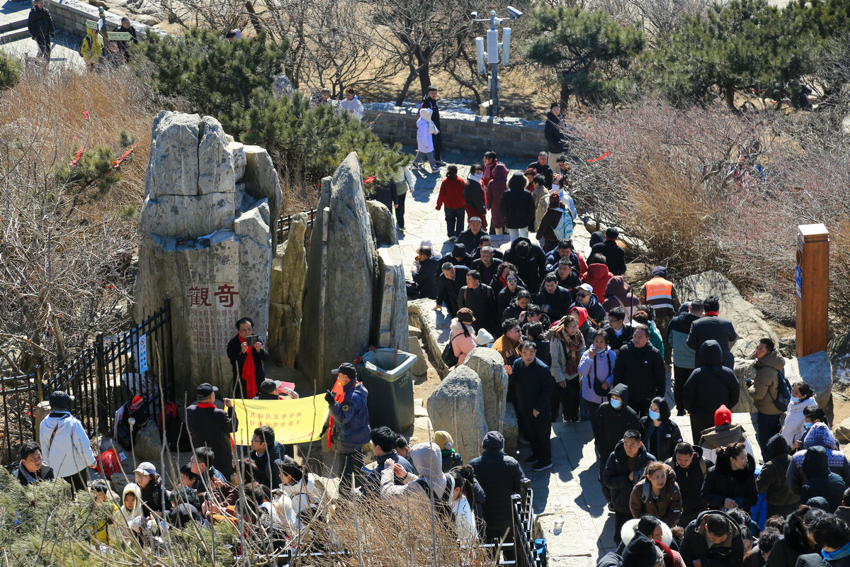 正月初八的泰山仍裹着冬的余韵,松枝上凝着残雪,白得清冽如碎玉,在灰褐岩缝间折细碎冷光。