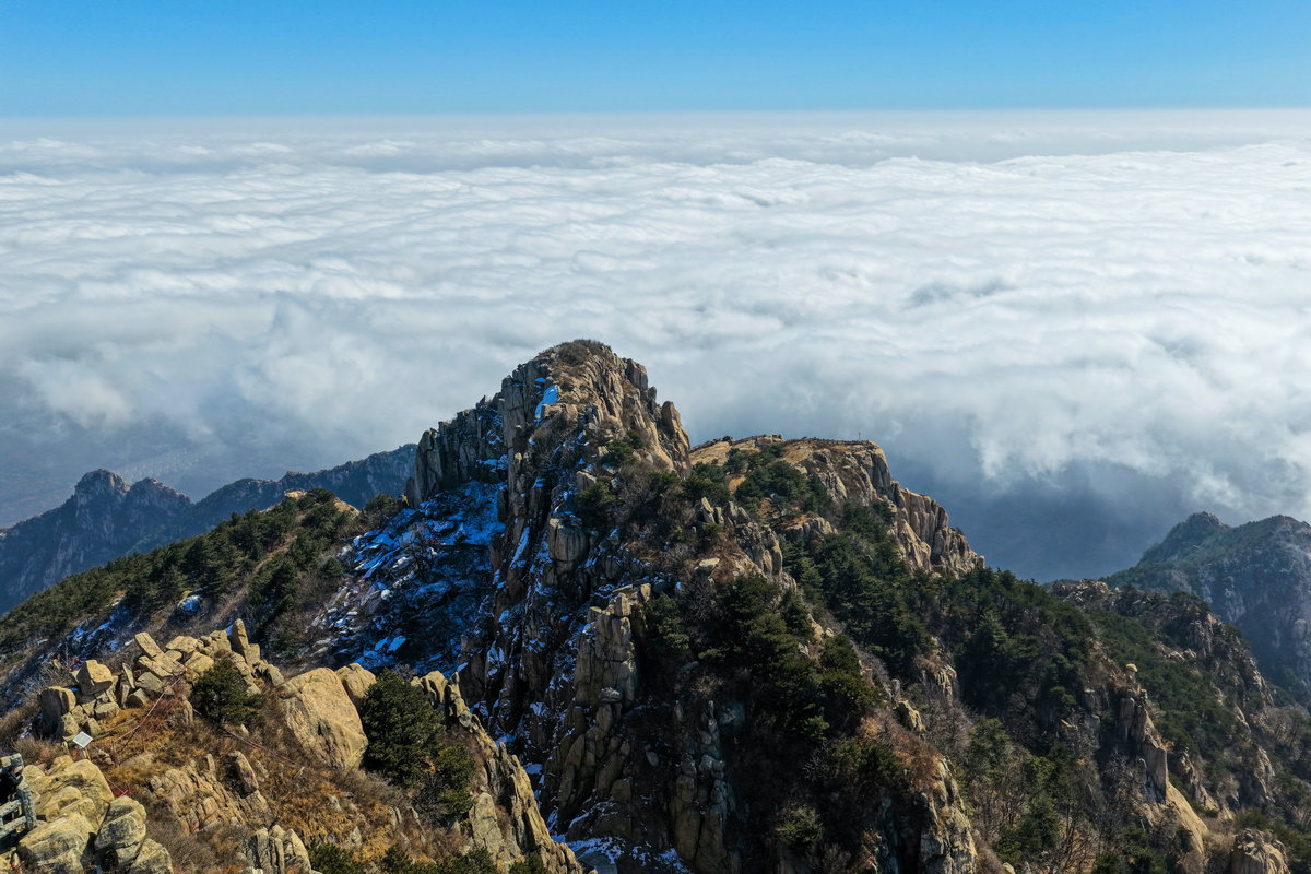 忽觉古人“荡胸生曾云”的痴,原是就是这云与雪的白色交响。云海是天公挥毫的,残雪是大地留白的工笔,共同在冬春之交的岱顶,上演着一场无声的白色诗剧。