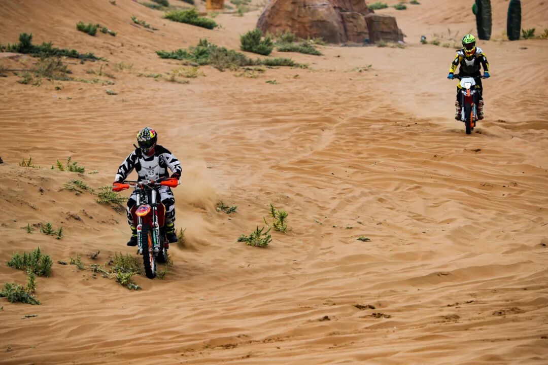 10月3-4日举行的摩托车赛事划分 450组(301-450CC)与250组(125-300CC)两大组别,设置严格的年龄保护机制——16岁以下车手需监护人全程陪同。国际摩联认证头盔、护具成为强制装备,冠军车手可捧走 2万元奖金。特别增设的"一人两车兼项"通道(兼项费150元),为技术全能型骑手提供更多可能。
